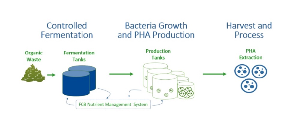 Cijeli ciklus proizvodnje bioplastike sastoji se u tome da se organski otpad razgrađuje u sirovinu putem bakterija koje konzumiraju otpad pritom ga pretvarajući u polihidroksialkanoat (PHA), koji se zatim suši i obrađuje u proizvod nalik smoli.