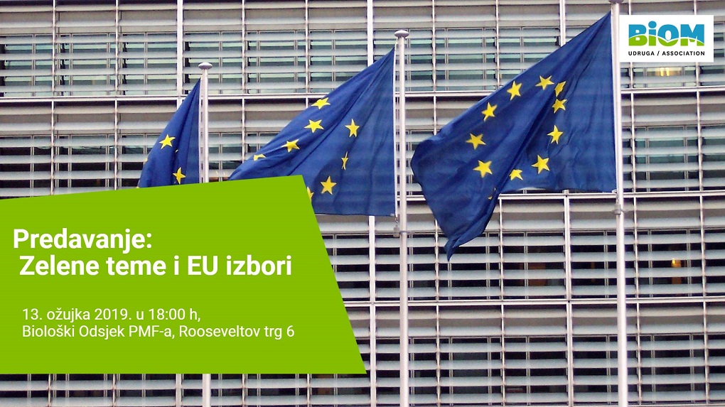 Kako se bliže izbori za Europski parlament, koji će se u Hrvatskoj održati 26. svibnja 2019., Udruga BIOM organizira predavanje pod nazivom „Zelene teme i EU izbori“.