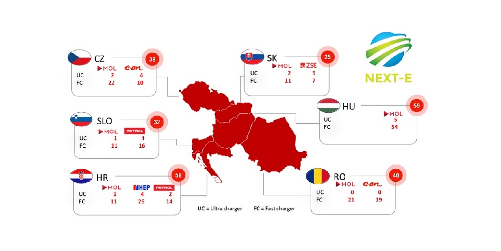Ugovor je potpisan na Danima digitalnog transporta u Tallinnu, a partneri konzorcija NEXT-E potpisali su ga s agencijom INEA (Izvršna agencija za inovacije i mreže). Njime će se omogućiti izgradnja mreže punionica EV-a unutar šest država srednje i istočne Europe: Češkoj Republici, Slovačkoj, Mađarskoj, Hrvatskoj i Rumunjskoj.