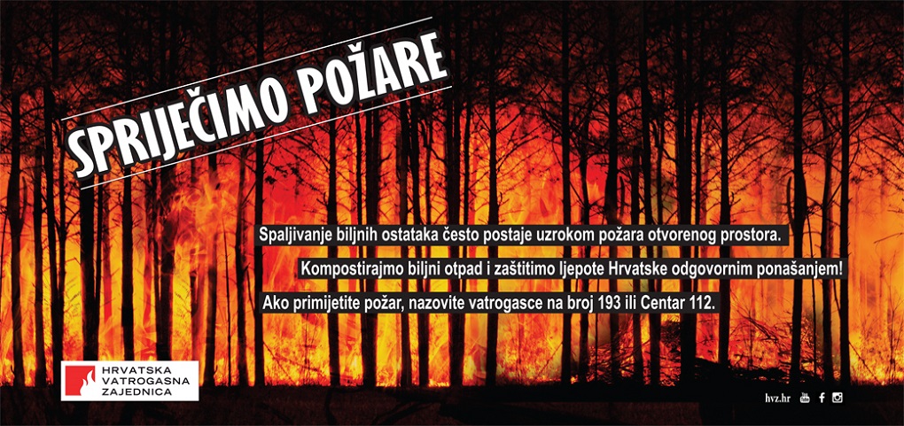 Nakon uočavanja požara odmah nazovite vatrogasce na broj 193, Centar 112 ili Policiju na 192.