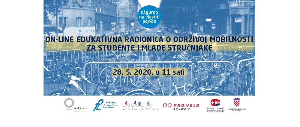 Studenti i mladi stručnjaci pozivaju se na on-line edukativnu radionicu o održivoj mobilnosti koja će se održati u četvrtak, 28. svibnja od 11-14 sati i to putem ZOOM aplikacije