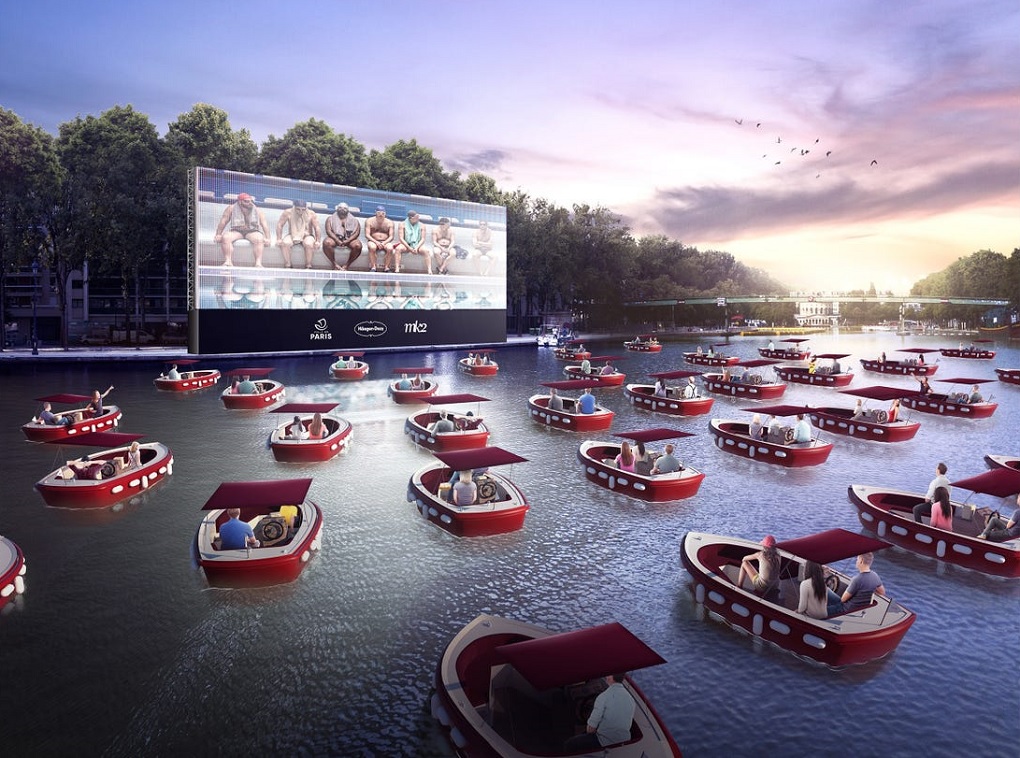 Grad Pariz se tako ove godine udružio s velikim francuskim kino prikazivačem MK2 Cinémas te građanima omogućio besplatno gledanje francuske komedije „Le Grand Bain“ („Plivaj muški“) iz 2018. godine u režiji Gillesa Lellouchea. Užitak je uistinu bio poseban jer su gledatelji film mogli gledati iz 38 električnih brodica i s ležaljki na obali jezera.