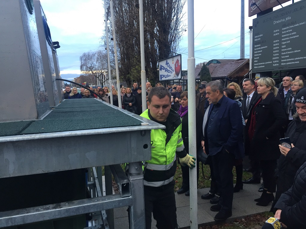 U nazočnosti gradonačelnika Milana Bandića, na lokaciji u Kranjčevićevoj (na križanju s Brozovom ulicom), predstavljeno je funkcioniranje i pražnjenje jednog kompleta koji se sastoji od pet spremnika – dva za plastiku i po jedan za papir, staklo i tekstil.