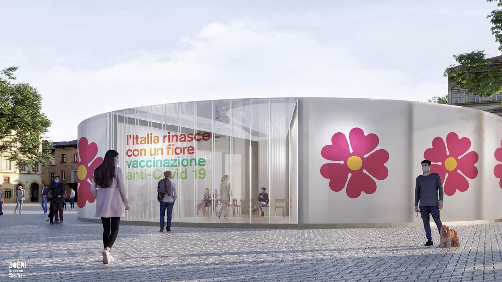 Arhitekt Stefano Boeri je zajedno sa svojim timom osmislio i razvio arhitektonski i komunikacijski koncept talijanske kampanje cijepljenja protiv koronavirusa. Integrirani prijedlog uključuje tri elementa: logotip kampanje u različitim oblicima, dizajn privremenih paviljona koji će se koristiti za cijepljenje na glavnim trgovima talijanskih gradova i mobilni informativni totem koji će se postaviti na javnim mjestima.