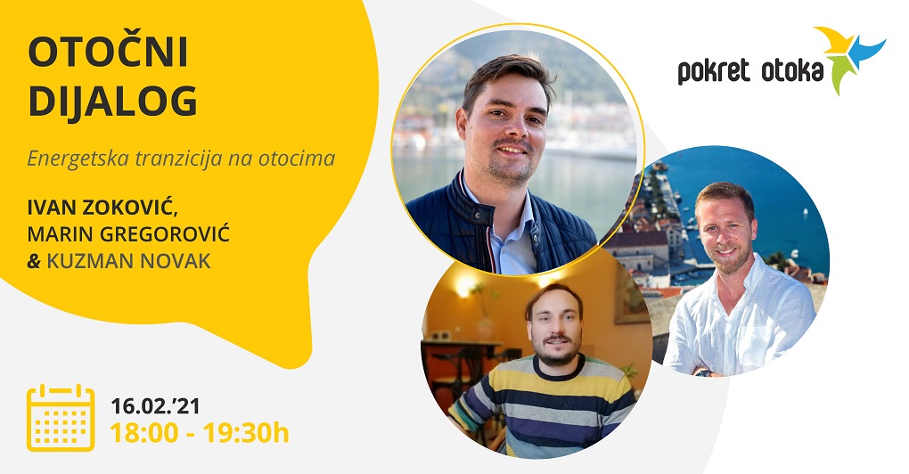 Ako se želite upoznati s energetskom tranzicijom i što nam ona sve donosi u budućnosti; koja je uloga jedinice lokalne samouprave, a koja građana; što se sve već poduzelo u procesu sprječavanja klimatskih promjena i ulogu Tajništva za EU otoke na hrvatskim otocima – bukirajte kalendar i pogledajte “Otočni dijalog” Pokreta otoka koji će se održati 16. veljače od 18 do 19:30 sati putem FB Live kanala.