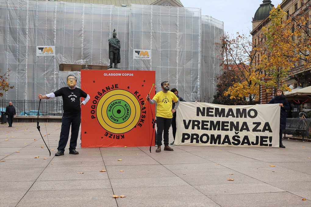 Poruka je to koju je u subotu 6. studenog Zelena akcija uputila povodom globalnog dana akcije za klimatsku pravdu, koji se održava tijekom UN-ove klimatske konferencije COP26 u Glasgowu. Aktivisti i aktivistkinje Zelene akcije održali su performans na Cvjetnom trgu kojim su slikovito prikazali kako Vlada RH promašuje klimatske ciljeve. Postavili su i transparent s porukom „Nemamo vremena za promašaje” kako bi ukazali na hitnost rješavanja ovog problema.