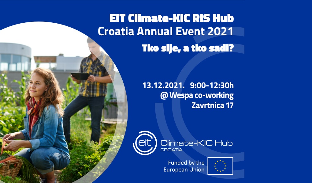 U ponedjeljak 13. prosinca 2021. od 9 do 12:30 sati u co-working prostoru WESPA (Dvorana Incubator, Zavrtnica 17, Zagreb) EIT Climate-KIC Hub povezuje sve one koji djeluju kao dio ekosustava zelenih, održivih i digitalno podržanih rješenja baziranih na prirodi. Želja organizatora ovog događaja je povezati inovatore, ideje, tvrtke, startupe, istraživače i organizacije, kao i one koji su dio sustava podrške kako bi zajedno stvarali rješenja, usluge ili proizvode dobre za ljude, društvo, prirodu i klimu, za našu zajedničku budućnost.