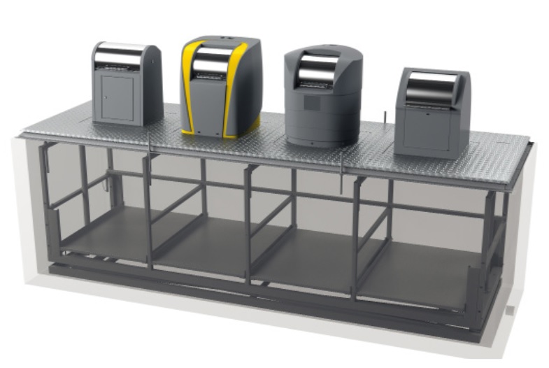 Metalna konstrukcija sistema podzemnih spremnika smještena je unutar betonskog uloška i spuštena je ispod površine zemlje. Sistem je natkriven metalnom pločom kao gornjim dijelom metalne konstrukcije, koja je u razini površine zemlje kada je sistem podzemnih kontejnera zatvoren. Na njoj su postavljene površinske konzole kroz koje se komunalni i selektivni otpad odlaže u podzemne spremnike.