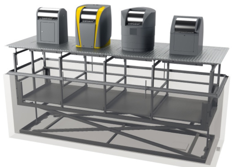 Pražnjenje podzemnih spremnika se obavlja pomoću autonomnog mehanizma za podizanje, koji je zasnovan na dva 4kW hidraulična cilindra i smješten u kromiranoj komori s programiranim vanjskim mehanizmom kontrole. Maksimalni kapacitet podizanja iznosi 3.900 kg, a vrijeme podizanja, odnosno spuštanja iznosi po 15 sekundi.