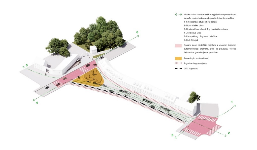 Kako je istaknuo dogradonačelnik Korlaet, „grad mora postati dostupniji svima, ne samo automobilima“, a promjenu je uzrokovala snažna potreba za širom pješačkom poveznicom između visoko frekventnih javnih gradskih površina kao što su Vlaška i Draškovićeva ulica, Trg hrvatskih velikana, Jurišićeva ulica, Europski trg i Trg bana Jelačića te Park Ribnjak, Schlosserove stube i SRC Šalata.