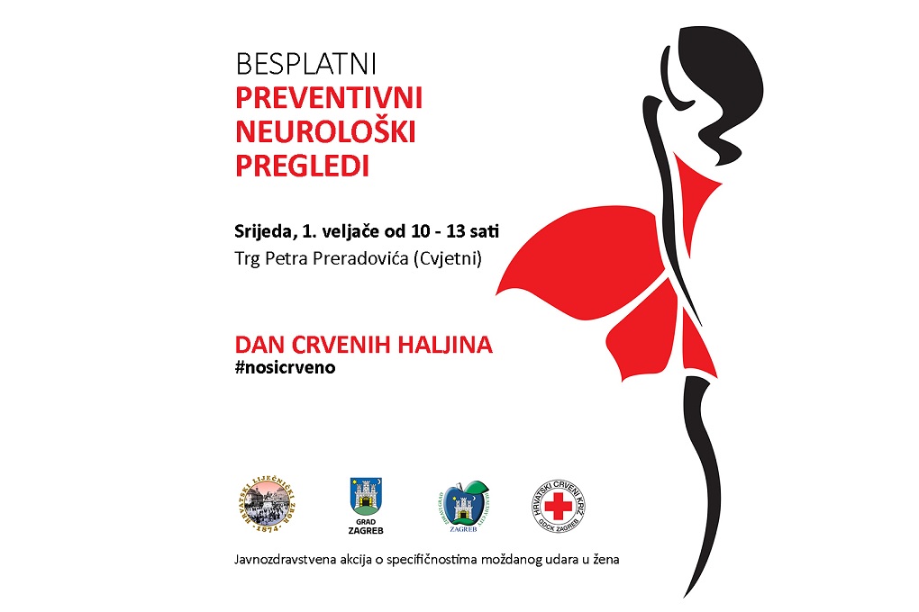 U srijedu 1. veljače, od 10:00 do 13:00 sati, na Trgu Petra Preradovića održat će se javnozdravstveno-edukativna akcija „Dan crvenih haljina 2023.“ u organizaciji Hrvatskog liječničkog zbora – Hrvatskog neurološkog društva i Gradskog ureda za socijalnu zaštitu, zdravstvo, branitelje i osobe s invaliditetom.