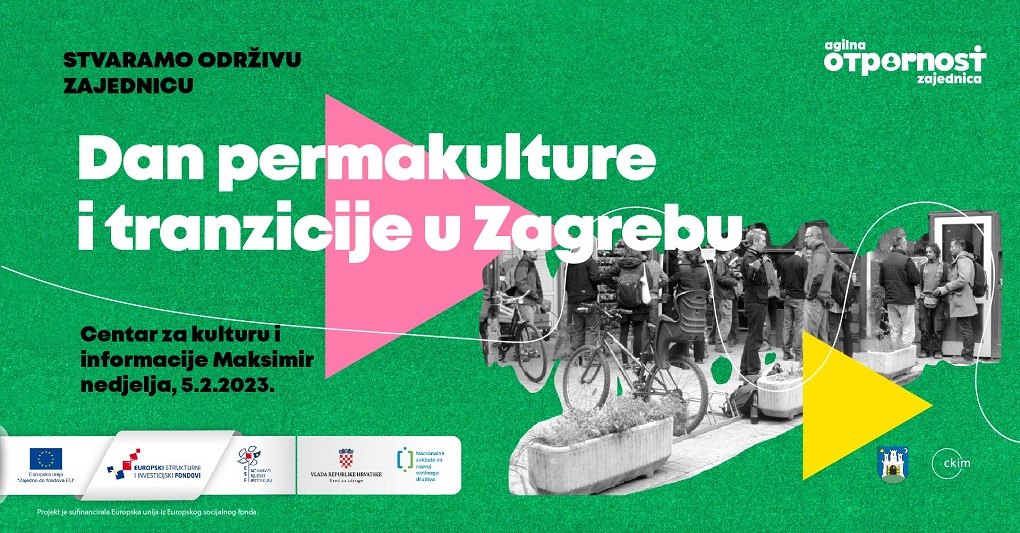Udruge Hrvatska permakultura i Vestigium pozivaju na cjelodnevni događaj „Dan permakulture i tranzicije u Zagrebu” koji će se održati u nedjelju 5. veljače 2023. u Centru za kulturu i informacije Maksimir.