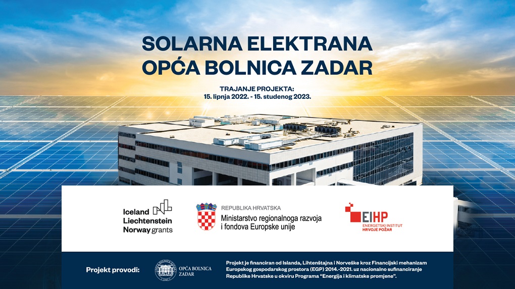 Današnjom početnom konferencijom u Zadru je predstavljen projekt „Solarna elektrana Opća bolnica Zadar” koji će doprinijeti sigurnosti opskrbe električnom energijom i smanjenju emisija CO2 uz istodobno smanjenje potrošnje električne energije. Projekt je financiran kroz Financijski mehanizam Europskog gospodarskog prostora u okviru Programa „Energija i klimatske promjene“.