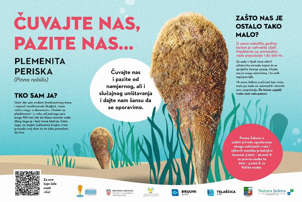 Plemenita periska (Pinna nobilis) najveći je mediteranski školjkaš i endem Sredozemnog mora. Rasprostranjena je u cijelom Jadranu i ima važnu ulogu u ekosustavu kao filtrator mora. Na njenim ljušturama obitavaju brojne vrste. Tijekom jeseni 2016. godine na obali Španjolske zabilježene su pojave masovnog pomora plemenitih periski. Prva potvrda o pojavi zaraze u hrvatskom dijelu Jadranskog mora zaprimljena je u svibnju 2019. godine. Zaraza se proširila do Istre što potvrđuje činjenicu kako je zaraza zahvatila cijeli hrvatski dio Jadrana. Smrtnost je na mnogim lokacijama stopostotna, a zbog dramatičnog pada populacije Međunarodna unija za očuvanje prirode (IUCN) je u listopadu 2019. godine plemenitu perisku svrstala u kategoriju „kritično ugroženih vrsta“.