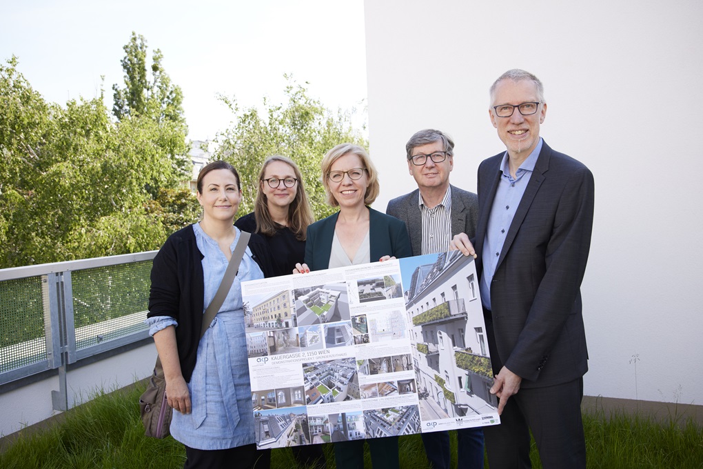 Projekt „Kauergasse 2“ u 15. bečkom okrugu pokazuje kako se suvremeni standardi energetske obnove i mjere zaštite klime mogu primijeniti i na starim zgradama. Zgrada iz 1895. godine, s ukupno 31 stanom i četiri poslovna prostora u prizemlju, nedavno je obnovljena prema EnerPHit standardu, a energetska obnova obuhvaćala je povećanje toplinske zaštite, prelazak na obnovljive sustave grijanja, ozelenjavanje fasade i krova te recikliranje sive vode.