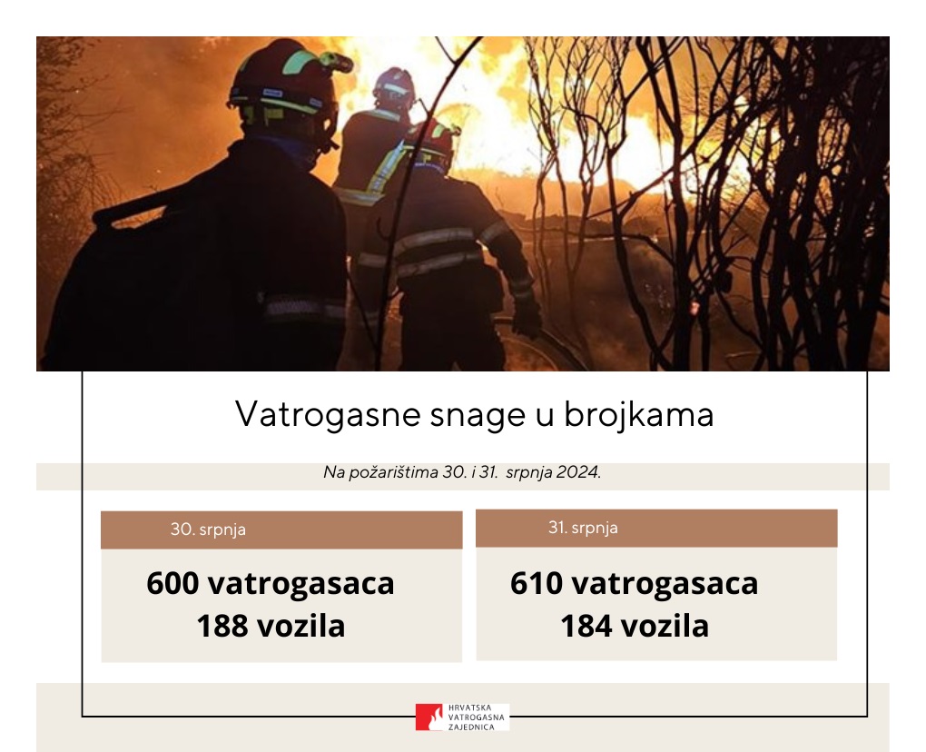 Hrvatski vatrogasci sve svoje zadatke izvršavaju po najvećim standardima struke, a vođeni humanim pozivom spremni su žrtvovati vlastito zdravlje i život u obrani građana i njihove imovine, što su do sada nebrojeno puta dokazali. I u ovome trenutku na terenu je na stotine vatrogasaca koji će tu ostati do potpune normalizacije situacije na požarištima i hvala svima, od Vlade RH, brojnih institucija do građana koji njihov trud prepoznaju i pružaju podršku u ovim izazovnim trenucima.“