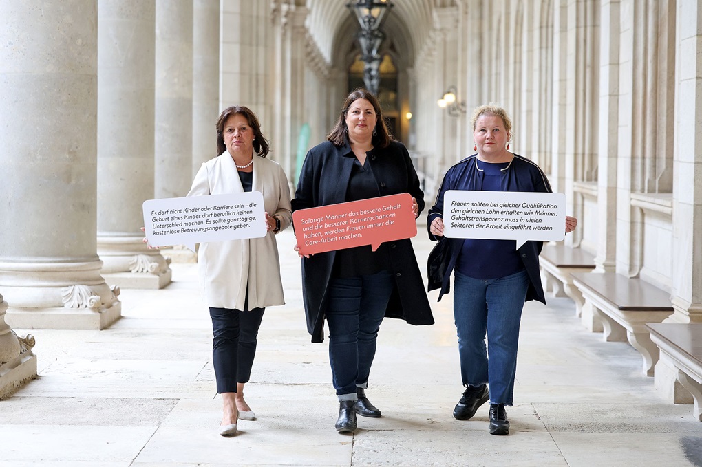 „Uz današnje uvjete trebat će nam više od 100 godina za smanjivanje razlika u visinama mirovina. Više nego ikad potrebno je voditi računa o tome da žene mogu raditi puno radno vrijeme i ostati zdrave na poslu do odlaska u mirovinu. To su ključne stvari za veće mirovine žena. Trenutačno jedna od tri žene ranije odlazi u mirovinu zbog bolesti ili nezaposlenosti. Ako želimo premostiti jaz u visini mirovina, ne možemo zaobići brigu žena o djeci ili članovima obitelji, šansu za posao s punim radnim vremenom i zdrave radne uvjete.“ – kazala je Korinna Schumann, potpredsjednica Austrijskog saveza sindikata (Österreichischer Gewerkschaftsbund – ÖGB).