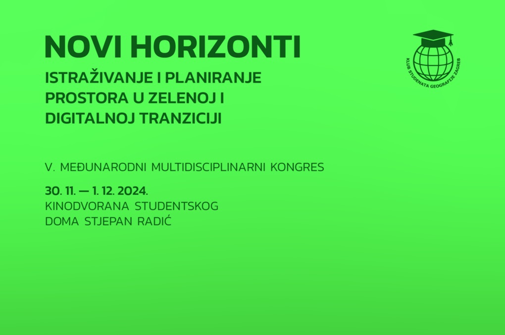 U Zagrebu se u organizaciji Kluba studenata geografije 30. studenog i 1. prosinca 2024. održava V. Međunarodni multidisciplinarni kongres „Novi horizonti: Istraživanje i planiranje prostora u zelenoj i digitalnoj tranziciji“.