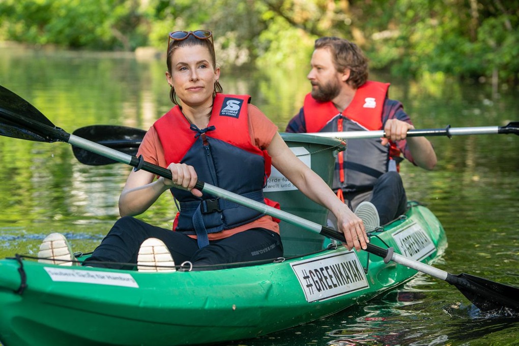 Ekološka organizacija Green Kayak osnovana je u Danskoj 2017. godine, a od tada je u njezinim akcijama čišćenja uz sudjelovanje preko 84 000 veslača u vodama diljem svijeta prikupljeno preko 130 tona otpada. Hamburg je bio prva lokacija ove nevladine organizacije izvan Danske, a zeleni kajaci sada se mogu unajmiti na 42 lokacije u šest europskih zemalja, uključujući gradove poput Kopenhagena, Berlina, Osla, Stockholma, Helsinkija i Dublina. Organizacija je u međuvremenu počela i s aktivnostima u japanskom Tokiju.