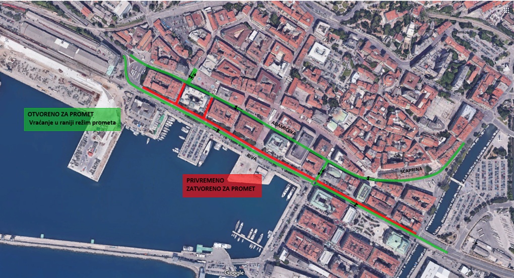 U prvoj fazi bit će otvorene Scarpina ulica, Adamićeva ulica, Trpimirova ulica, sjeverna strana Trga Žabica, prometne površine Jadranskog trga te Henckeova ulica. Na svim navedenim prometnicama postavljena je vertikalna i horizontalna signalizacija radi osiguravanja sigurnog i protočnog odvijanja prometa, izvijestili su iz Grada Rijeke.