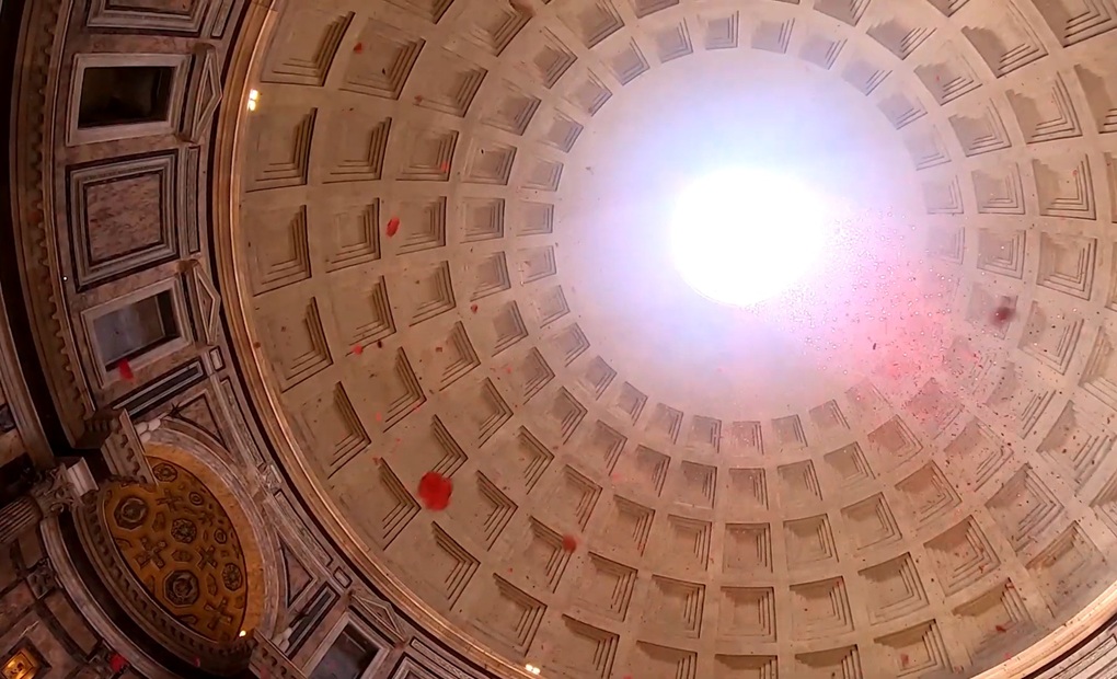 Ceremonija bacanja ružinih latica kroz oculus Panteona tradicionalno se održava na blagdan Duhova
