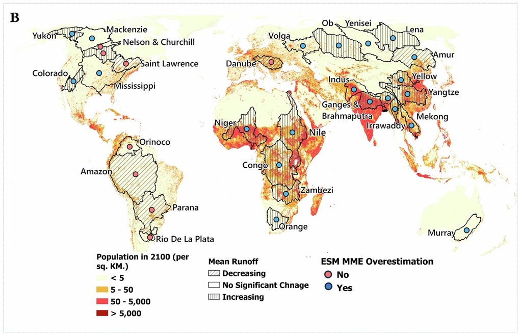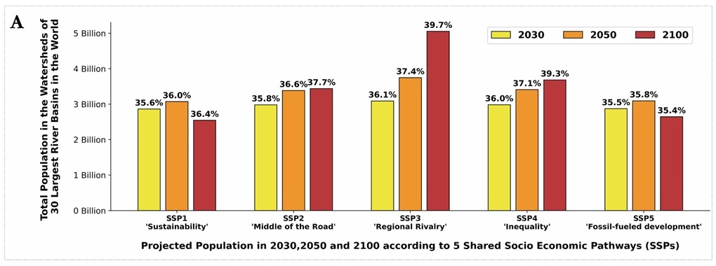 Istraživanje pokazuje da pet najpouzdanijih modela predviđa da će 40 posto od 30 najvećih svjetskih riječnih slivova do 2100. imati smanjeno otjecanje, što će pogoditi populaciju 100 puta veću od broja stanovnika New Yorka — za razliku od ranijih procjena koje su govorile o 260 milijuna ljudi.